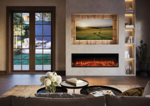The Motion® Range from Elcofire is a fire with the cleanest built-in design and the tallest flames and is complimented with Illuminated Pulsating Logs and fuel bed that lets you enjoy a hyper-realistic electric fire that rivals real fire.