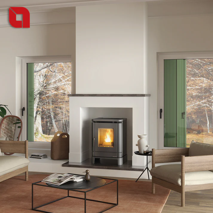 The Peggy features a durable enameled cast iron top, fire door and hearth for long-lasting performance and efficient heat distribution. Its ceramic glow plug ensures quick ignition, while the PRO AIR ventilation system offers silent operation. A perfect all-rounder for reliable warmth and everyday comfort.